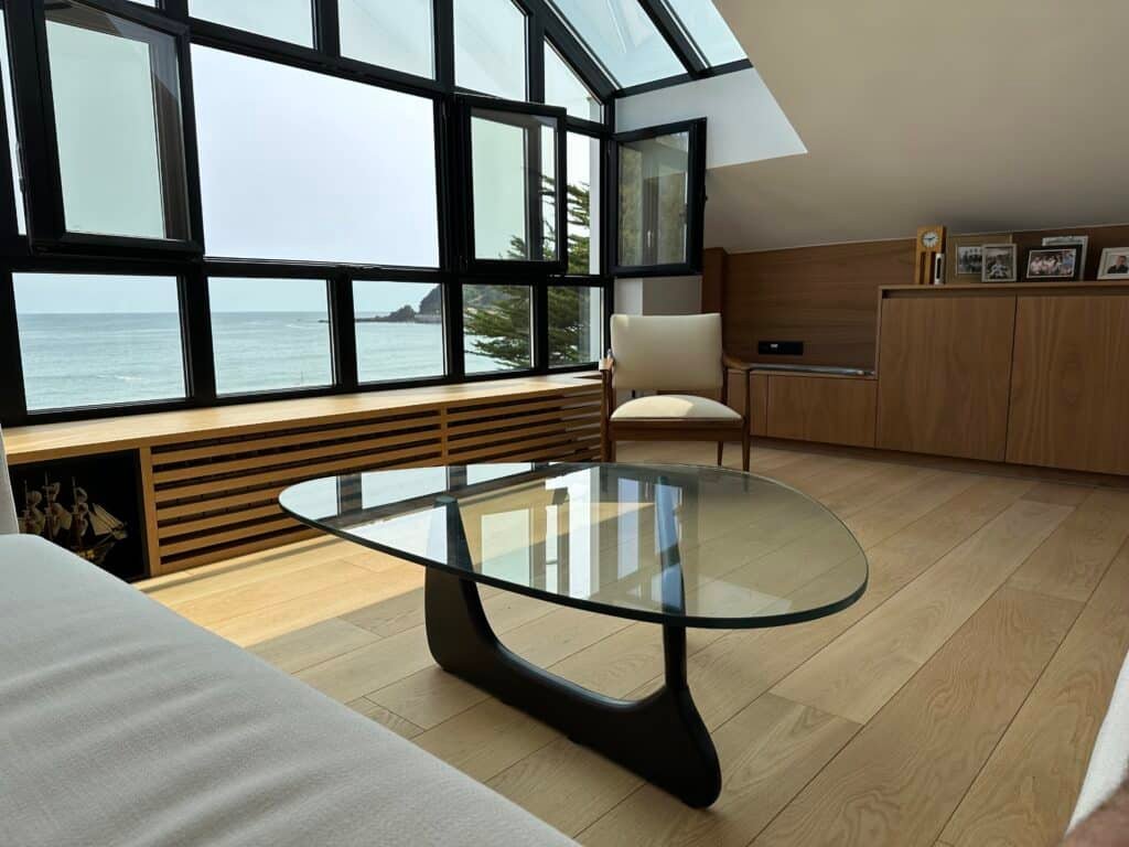 The top floor is dedicated to enjoyment, offering an enveloping panoramic view of Ribadesella beach, perfect for leisure, quiet reading, or evening drinks with friends.